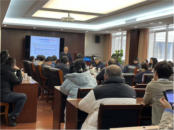 会议特邀在基金申报方面经验丰富的金万勤教授作专题辅导。金教授结合自身实践,围绕科学问题凝练、创新点阐述及申请书撰写要点等核心内容,进行了系统讲解与分享,并与参会员工进行了现场交流。