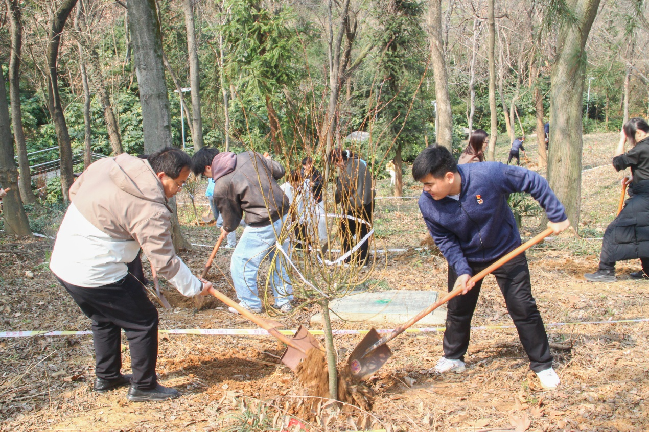 活动现场,大家热情高涨、分工协作、默契配合,挥锹铲土、扶苗培根、提水浇灌,各个环节衔接有序,现场呈现出一派团结协作、昂扬向上的劳动景象。经过共同努力,一株株新苗迎风挺立,为校园增添了勃勃生机,播撒下了绿色发展的希望种子。