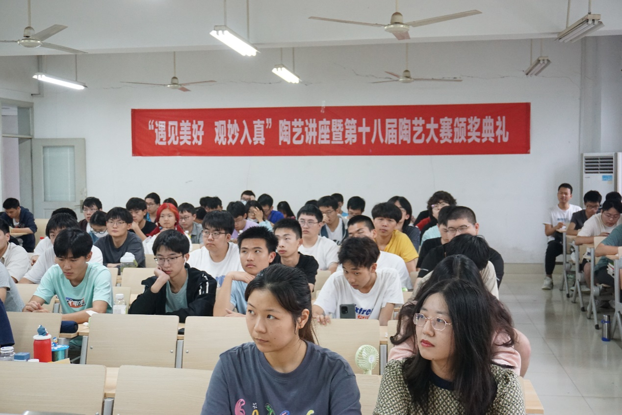 报告会上,石防震副书记强调广大同学要加强美育教育,坚持做到学习知识与参加实践结合,做德智体美劳全面发展的新时代青年。贺烽教授结合中国不同时期具有代表性的陶瓷艺术品,介绍它的制作工艺和背景,让同学在陶瓷艺术品中体会中国传统文化。