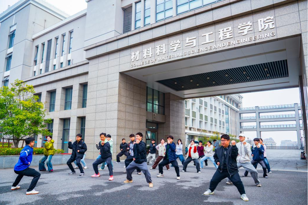 活动现场,领学人郭江涛以武术实践开展领学分享,阐释了中华武术强身健体、磨砺意志的价值,以及强健体魄对材料学科科研攻关、专业深耕的基础保障作用,号召青年学子将武术中的坚韧精神融入专业学习与科研实践。领学结束后,武术学习环节有序开展,同学们跟随指导认真练习基础招式,一招一式刚劲有力、整齐划一,在凝神聚力的习练中感受中华武术魅力,尽显材料青年朝气蓬勃、坚毅奋进的青春风采。