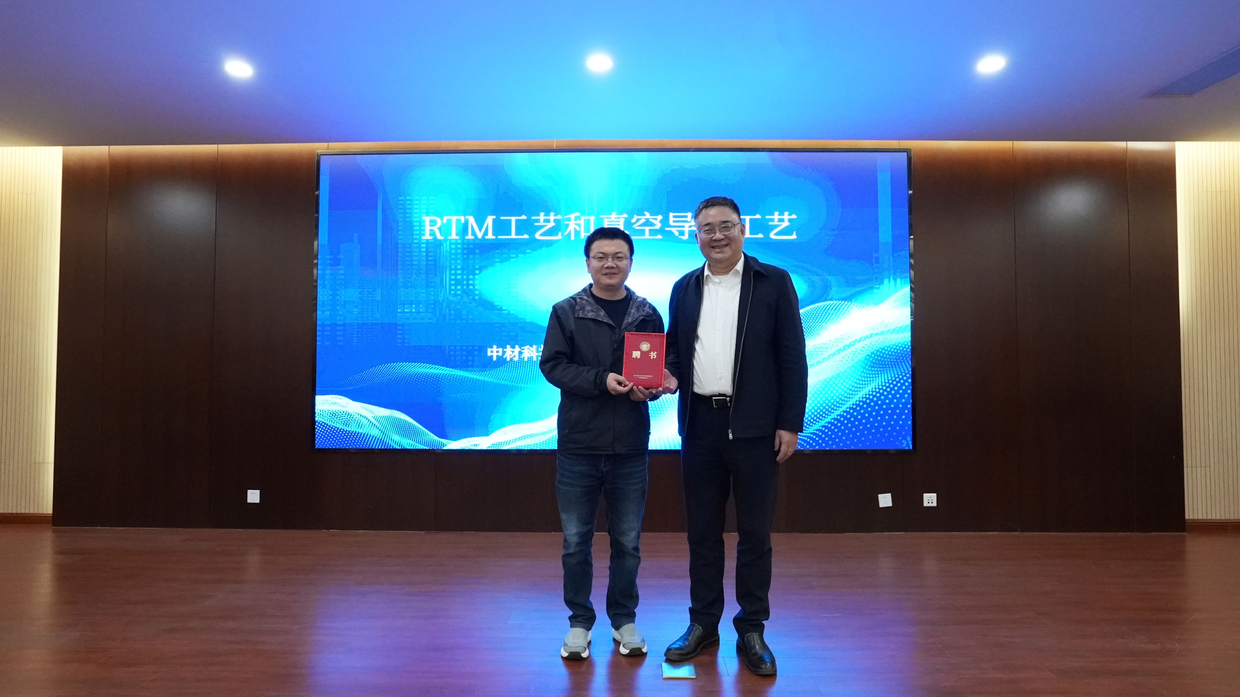 活动特邀中材科技风电叶片股份有限公司研发工艺高级工程师王刚担任主讲。他围绕树脂传递模塑(RTM)与真空导入工艺,系统讲解了工艺原理、核心参数及配套设备,并结合风电叶片制造的实际案例,深入剖析了真空导入工艺在产业一线的应用要点与工程经验。全省相关专业的500余名师生通过线上线下同步参与学习。课后副校长陆伟东为王刚颁发了校级产业教授证书。