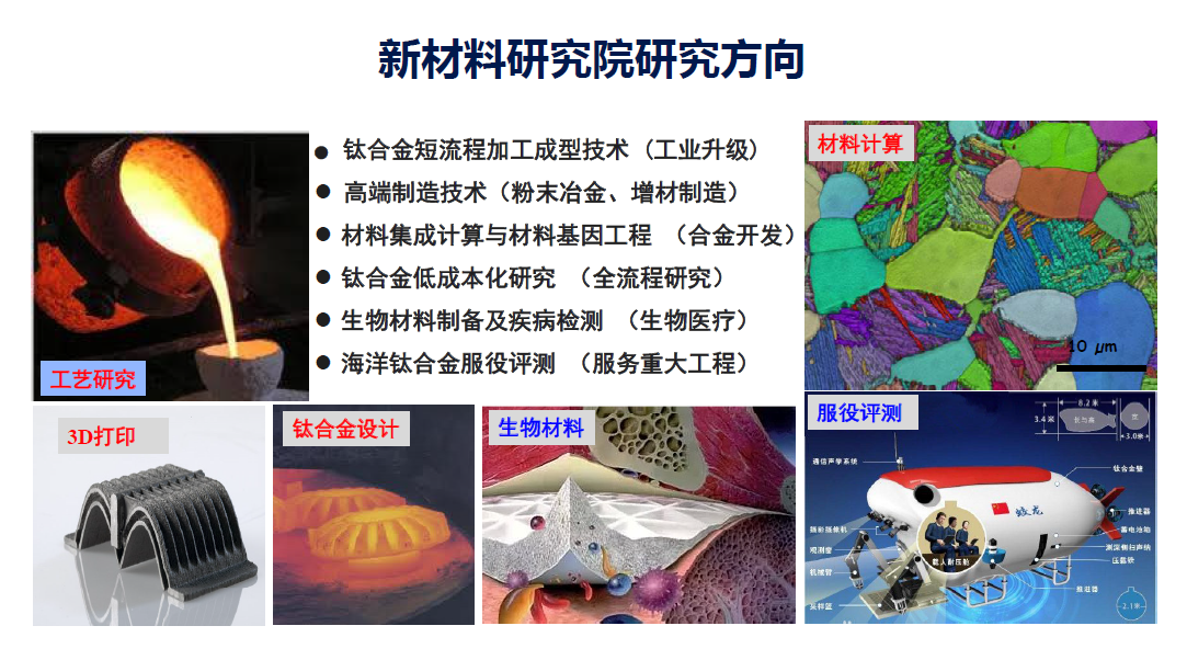 bevictor伟德新材料研究院是以中国工程院周廉院士为领衔科学家,以常辉教授为管理责任人,以顾忠伟教授作为生物材料方向首席科学家,由bevictor伟德牵头,并联合中船重工第702研究所、南京宝色股份有限公司、江苏天工科技股份有限公司和西北有色金属研究院等国内先进海洋装备设计和建造单位、材料研制和加工单位共同建设。新材料研究院是以钛及钛合金为代表的三航工程军民用先进材料为研究中心,聚焦深海重大装备等国家重大需求,辐射材料工程高效设计、产业技术升级及换代,以新型高性能钛合金研制、生物医疗金属材料研发、增材制造关键技术以及金属腐蚀防护等作为主要研究方向,注重学科交叉、产教融合、科学研究与工程技术研究相结合,实现产学研用的整体化发展目标,建立国内一流、国际领先的专业化研究团队。已承担各类项目60余项,发表论文300余片,专利近200件,并培养研究生超300人。新材料研究院团队充分发挥军民融合前沿技术、科技创新、人才培养和科技产业成果培育等主要功能,建设海洋工程先进材料研发和技术服务平台、海洋工程先进材料高端人才培养平台、成果转化与工程应用技术研发平台及海洋工程先进材料性能表征与评价公共服务平台,培育海洋工程先进材料及制造技术产业,为提升江苏省军民融合产业及海洋经济的创新发展提供重要的材料基础,为我国海洋强国战略及区域经济发展贡献力量。