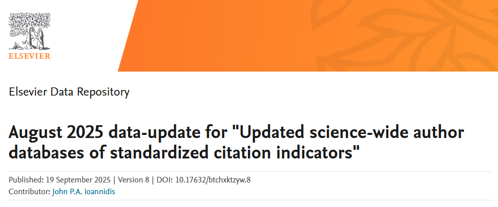 全球前2%顶尖科学家榜单由斯坦福大学John P.A. Ioannidis教授团队与Elsevier旗下Mendeley Data网站合作发布,该榜单基于Scopus数据库,使用了如下六种关键因素的指标来进行打分:(1)总引用量(2)Hirsch H-index(3)共同作者修正的Schreiber Hm-index(4)单独作者(5)单独或者第一作者(6)单独、第一或者最后作者的文章引用量。这些数据提供了一个面向科学家长期科研表现的衡量指标,能够更客观、更真实的反映科学家的影响力。该榜单综合这些数据,根据“生涯影响力”和“年度影响力”从近700万名科学家中遴选出世界排名前2%的科学家,同时根据标准的科学-矩阵分类法,将科学家划分为22个科学领域和174个细分子领域。为科学家长期科研表现提供了一个衡量指标,能够更客观、更真实地反映科学家的影响力。
